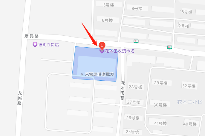 02花木王菜市场楼顶北侧钢结构广告牌,位置在康民路与花木王巷交口。