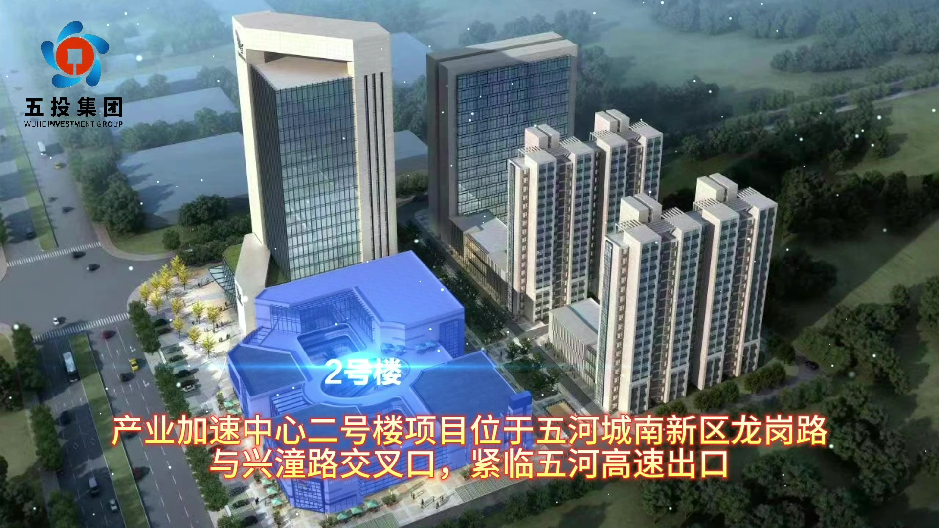 产业加速中心二号楼项目位于五河城南新区龙岗路与兴潼路交叉口,紧临五河高速出口。建筑面积约为1.5万㎡,停车场、绿化等配套设施齐全。