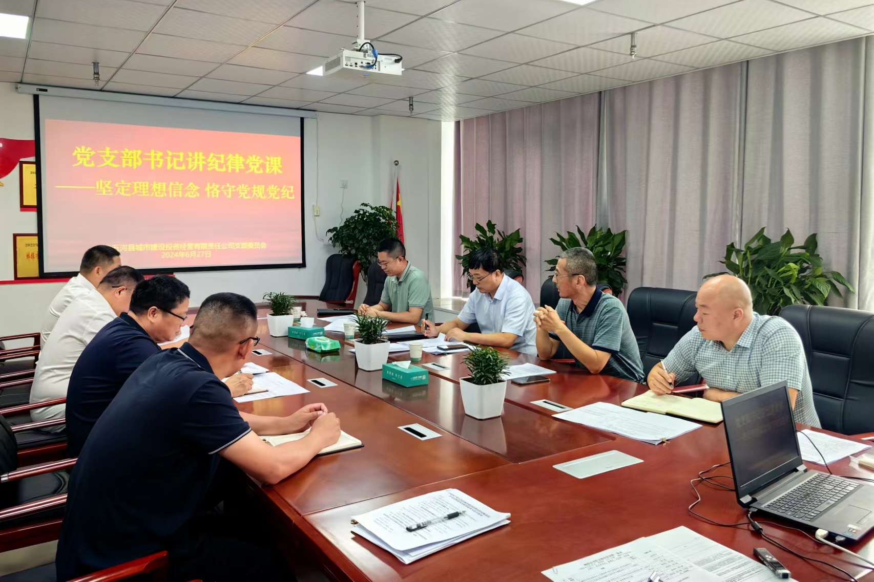 久盛党支部书记王超同志以《筑牢思想防线,守住纪律底线》为课题,通过解读党纪学习教育读本,引领全体党员干部要保持政治定力,提高政治站位,忠诚履职担当,筑牢思想防线,守住纪律底线,推动公司高质量发展。