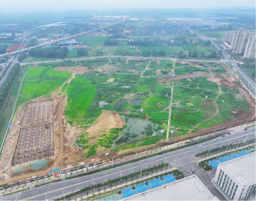 五河县综合物流园项目位于沱湖大道西侧,于2024年1月开工,主要建设内容包括4栋物流仓库、2栋冷链仓库、1栋商务写字楼、配套公寓楼、1栋汽修及结算中心、地下人防车库及门卫、消防、电梯、弱电、给排水、绿化、道路等配套设施。截至目前,地下室桩基施工完成总量的20%、室外道路施工完成总量70%;3#、4#物流仓库主体框架结构施工完成。