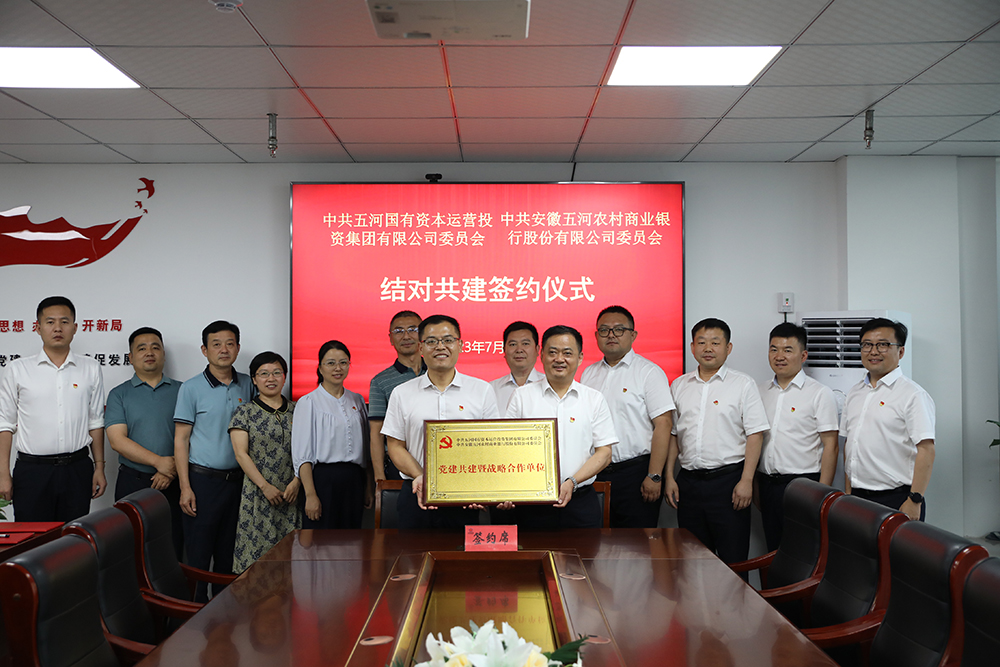 为进一步优化党建提质增效,深入推进银企联动,实现党建和业务资源互补、优势共享,7月10日,中共FUN乐天使官方网站委员会与中共安徽五河农村商业银行股份有限公司委员会举行党建结对共建签约仪式。双方党委班子成员出席本次签约仪式。