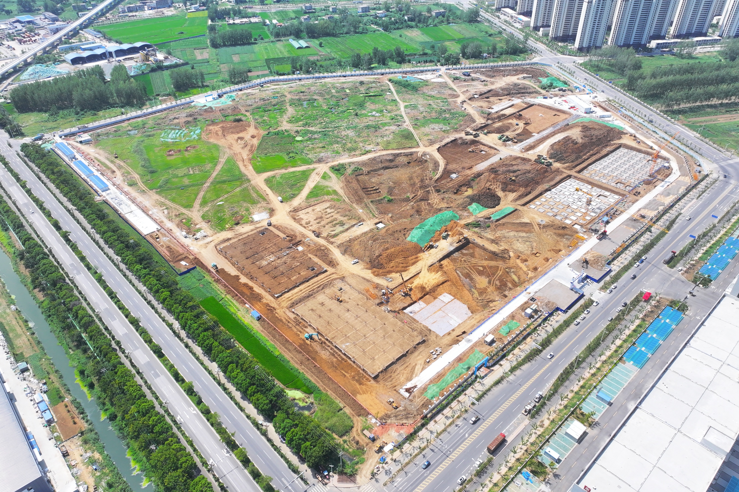 五河县光电产业园安徽水利开发有限公司承建部分的现场负责人俞叶保介绍说,“建设内容包括新建26栋生产厂房、2栋宿舍楼、食堂及配套工程。”