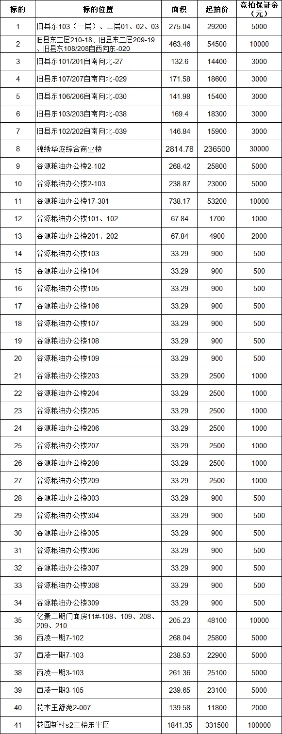 五河县谷源粮油办公楼等小区门面房三年期使用权拍租公告