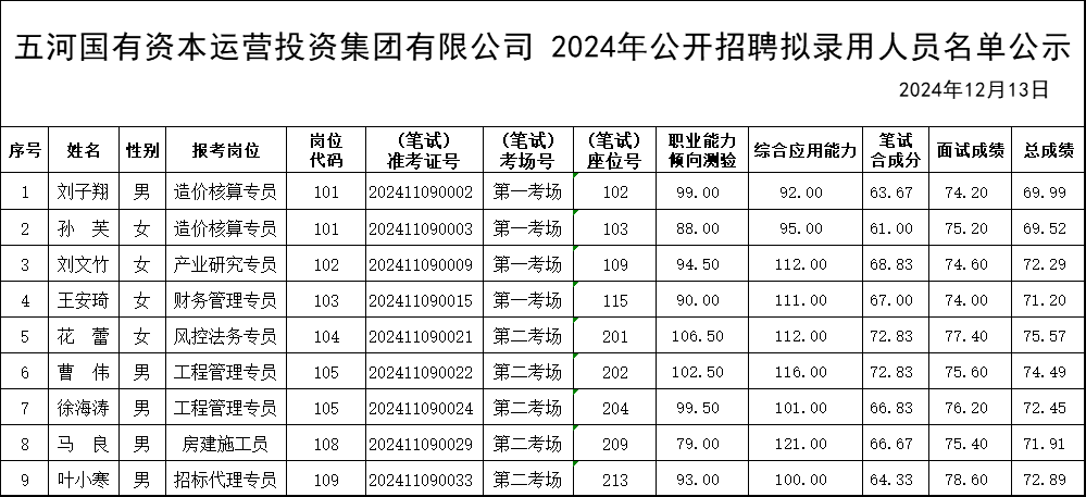 FUN乐天使官方网站集团2024年公开招聘拟录用人员名单公示