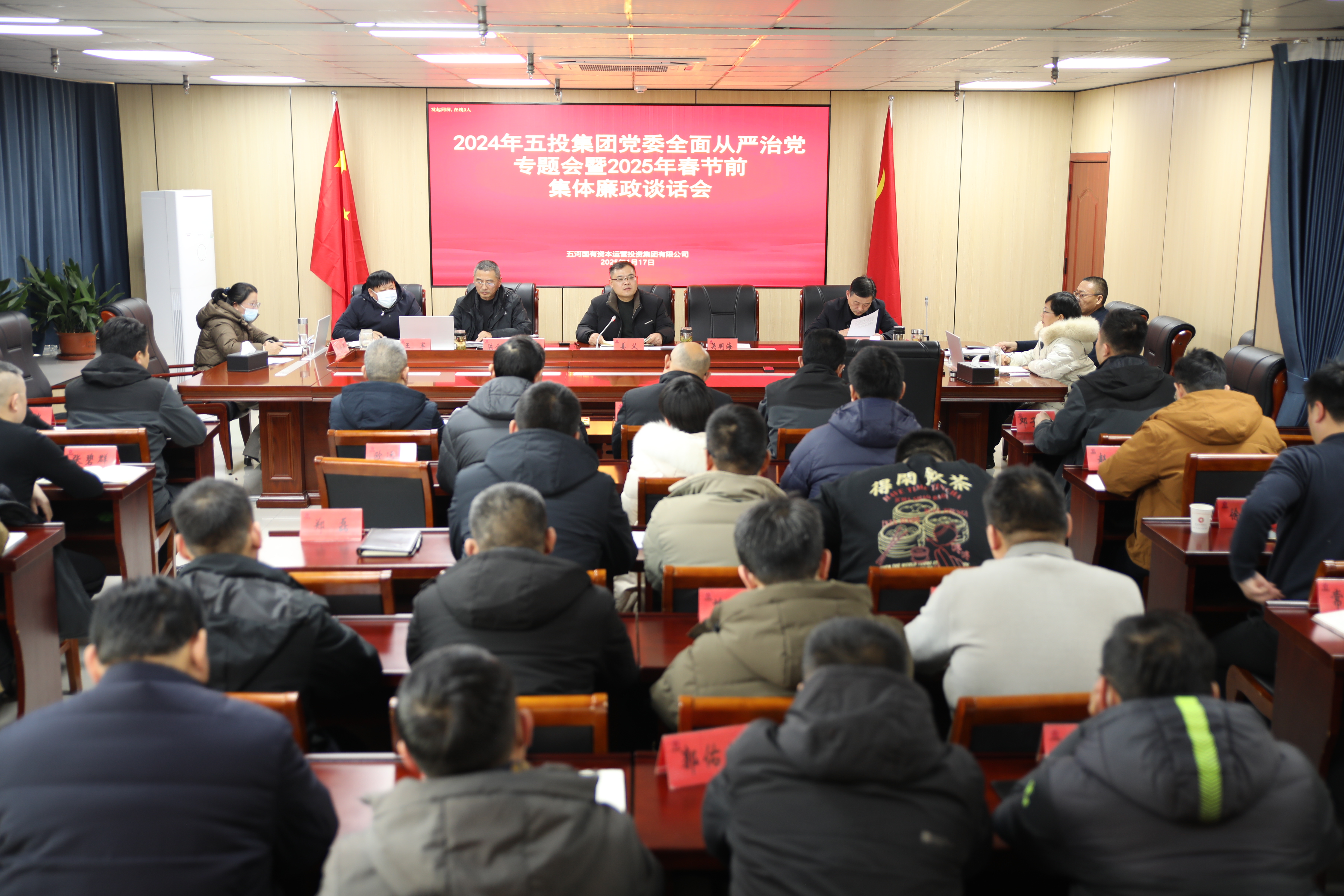 1月17日下午,2024年FUN乐天使官方网站集团党委全面从严治党专题会暨2025年春节前集体廉政谈话会在集团16楼第二会议室召开。集团公司领导班子成员、党委有关部门及各职能中心负责人、各党支部委员、管理公司与经营公司班子成员以及部分中层干部参加了此次会议。