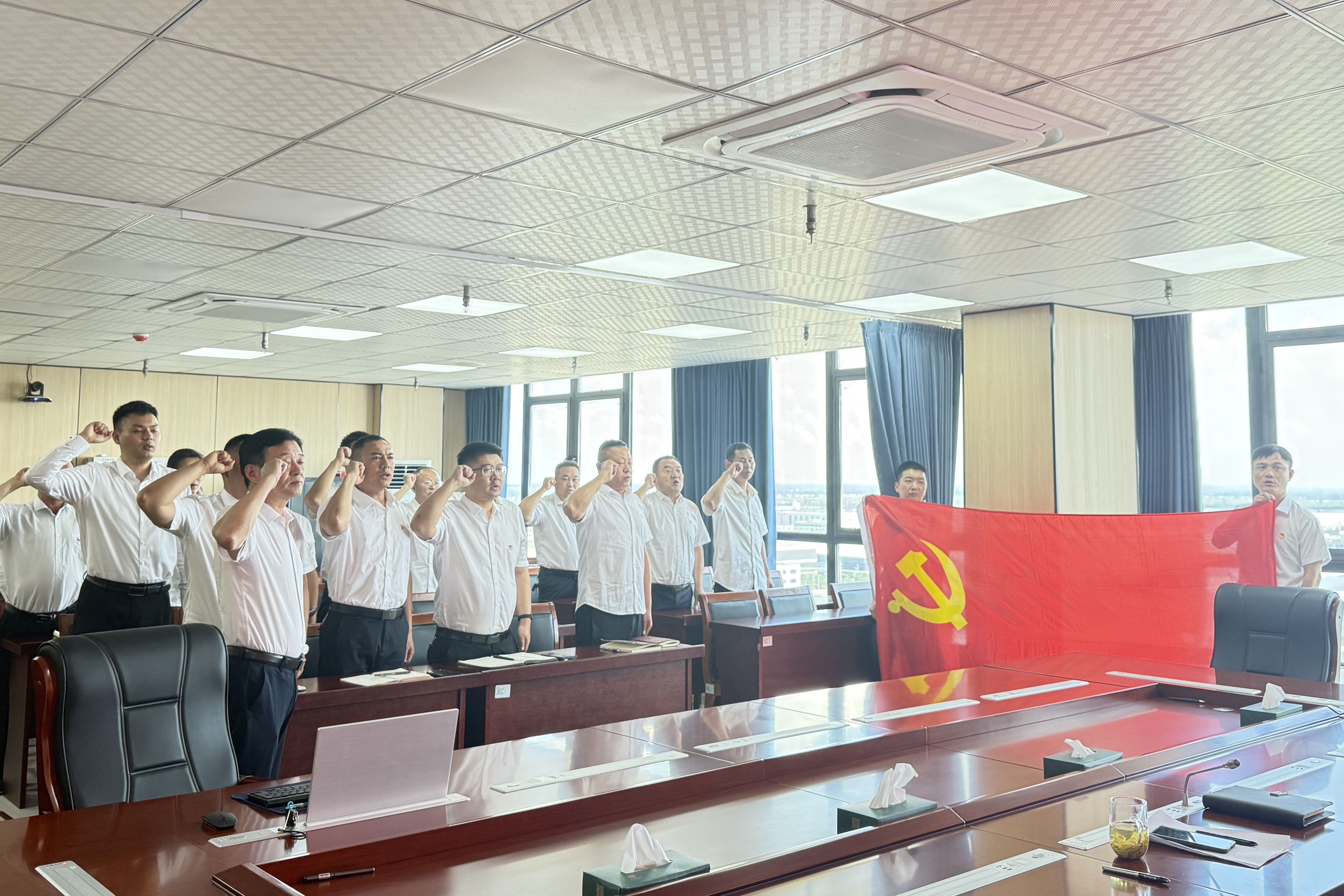 重温誓词强信念。全体党员佩戴党徽,在党支部书记领誓下面向党旗庄严宣誓。“为党和人民牺牲一切”的铿锵誓言,唤醒入党初心,紧握的拳头与坚毅的目光,彰显党员忠诚担当的政治本色。
