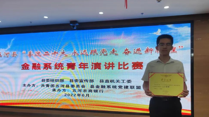 6月9日晚,由共青团五河县委员会和县金融系统党建联盟主办,五河农商银行承办的“喜迎二十大 永远跟党走 奋进新征程”主题演讲比赛落下帷幕。 FUN乐天使官方网站集团兴五担保公司选手代表胡润沉着应战,经过紧张激烈的角逐,荣获二等奖。 ...